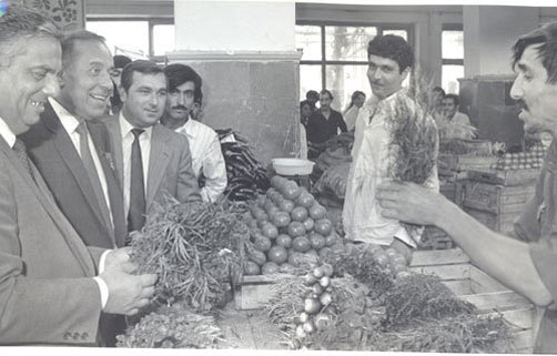 Heydər Əliyev Bakı bazarlarından birində, 1980-ci illər