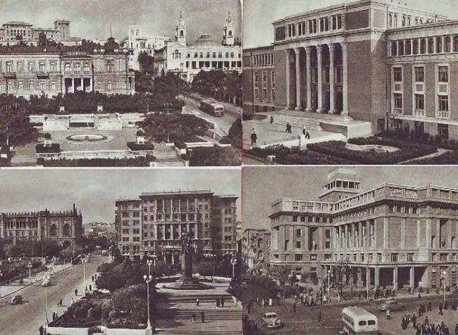 Hitlerin heykəlinin başını aparan sovet əsgəri. Berlin, 1945-ci il