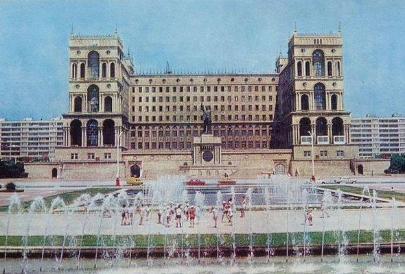 Uşaqlar Hökumətin Evinin binasının qarşısında oynayırlar, Bakı. 1980-ci illər