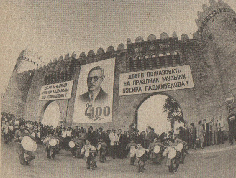 Gənclər meydanı. Üzeyir Hacıbəyovun 100 illiyinin bayram edilməsi. Bakı, 1985-ci il