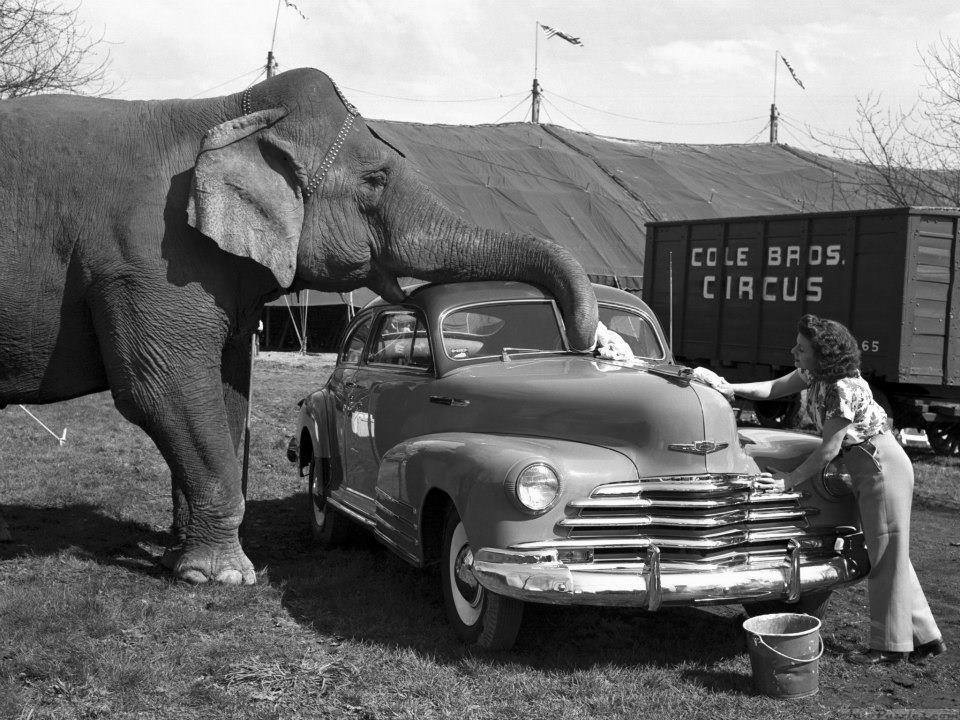 Fil avtomobili yumağa kömək edir, ABŞ, 1950-ci il