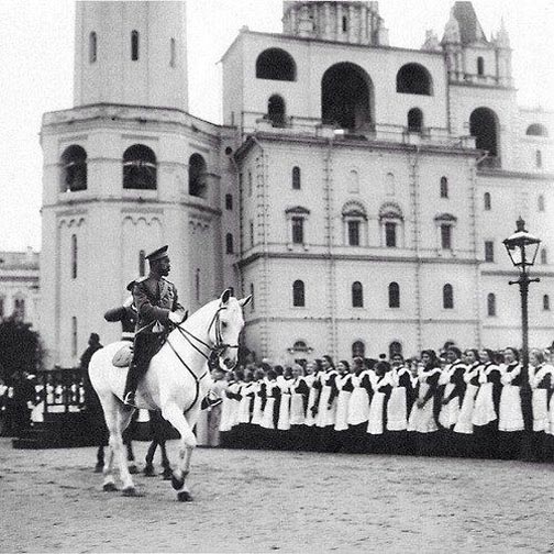 Rus məktəbli qızları öz imperatorlarını salamlayarkən
