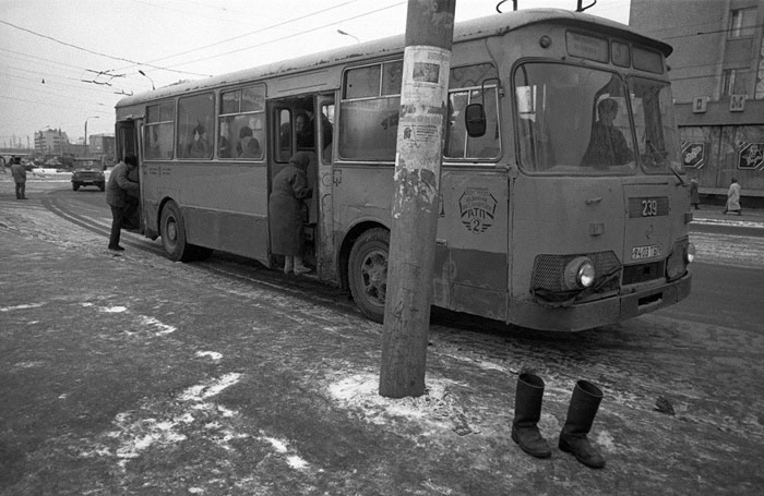 Avtobus dayanacağında. SSRİ, 1980-ci illər