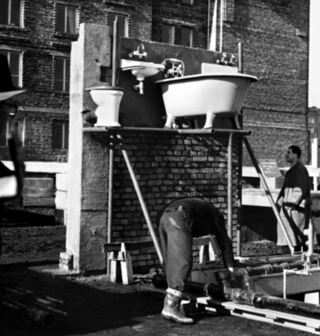 Krakovda yaşayış evinin tikintisi. Polşa, 1954-cü il