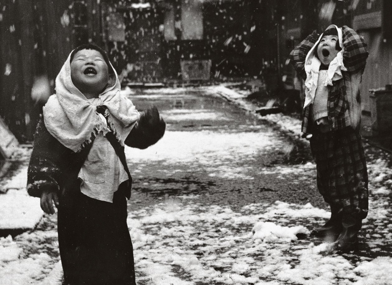 Uşaqlar qar yağmasına sevinirlər. Yaponiya, 1950-ci il