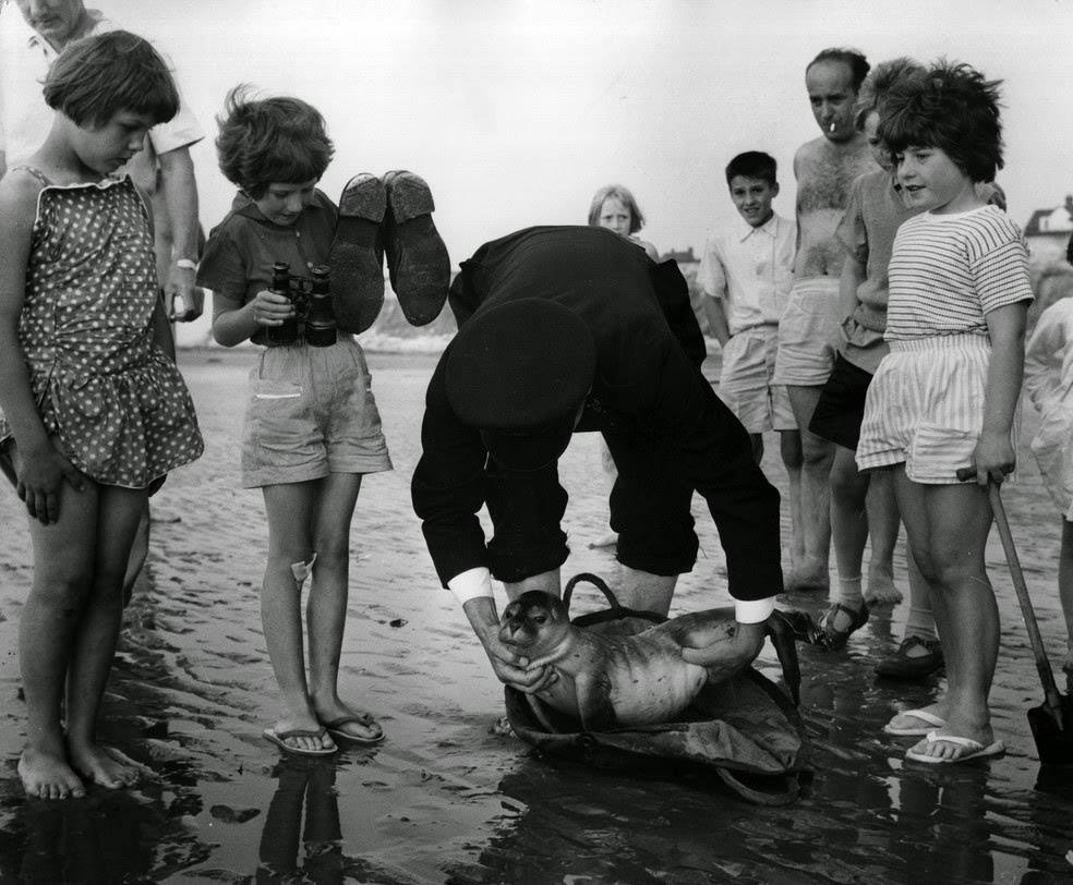 Uşaqlar suiti balasını çimərlikdə tapdılar və polisi çağırdılar. İngiltərə, 1964-cü il
