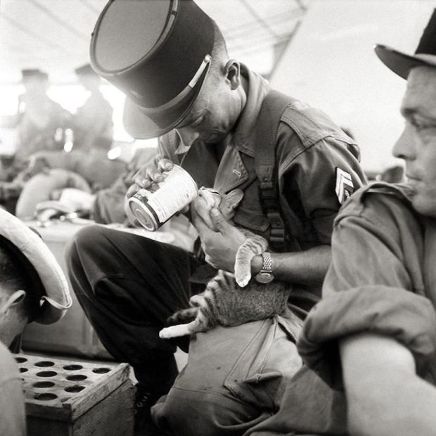 Fransız əsgəri pişik balasını yedizdirir, 1956-cı il