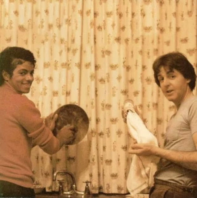 Maykl Cekson və Pol Makkartni qab-qacaq yuyurlar. ABŞ, Los-Anceles, təxminən 1979-1982-ci illər