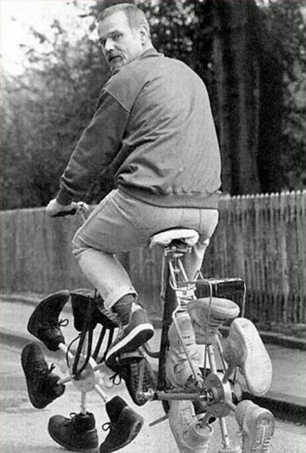 Ayaqqabıdan hazırlanmış təkərlərlə velosiped