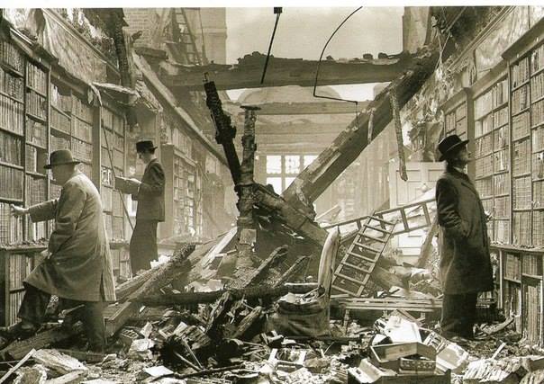 Bombardmandan sonra kitabxana, London, 1940-cı il
